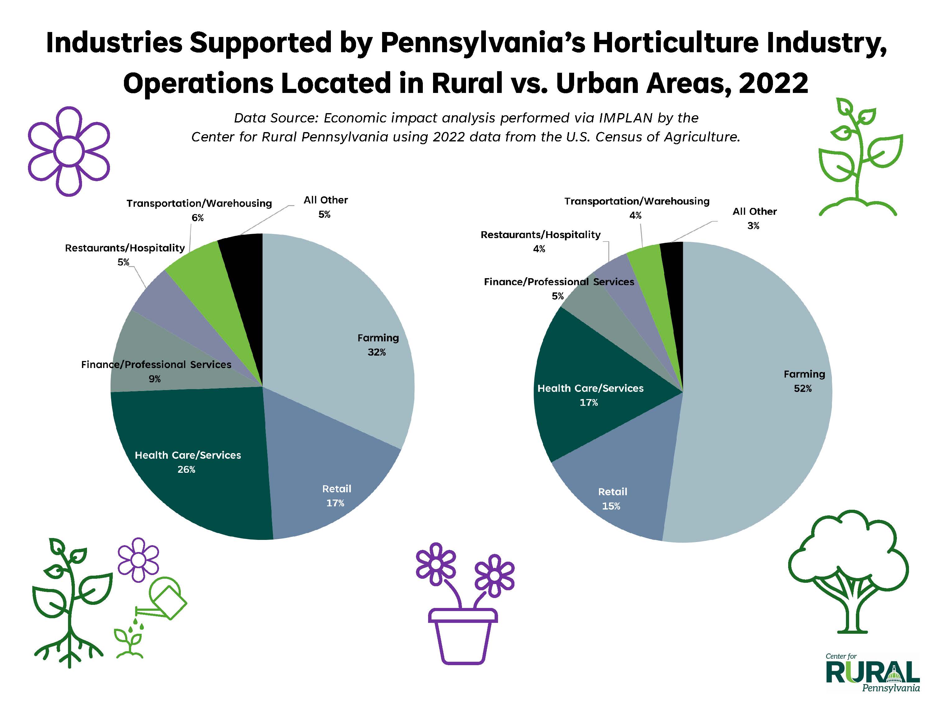 Industries Supported by Pennsylvania's Horticulture Industry, Operations Located in Rural vs. Urban Areas, 2022