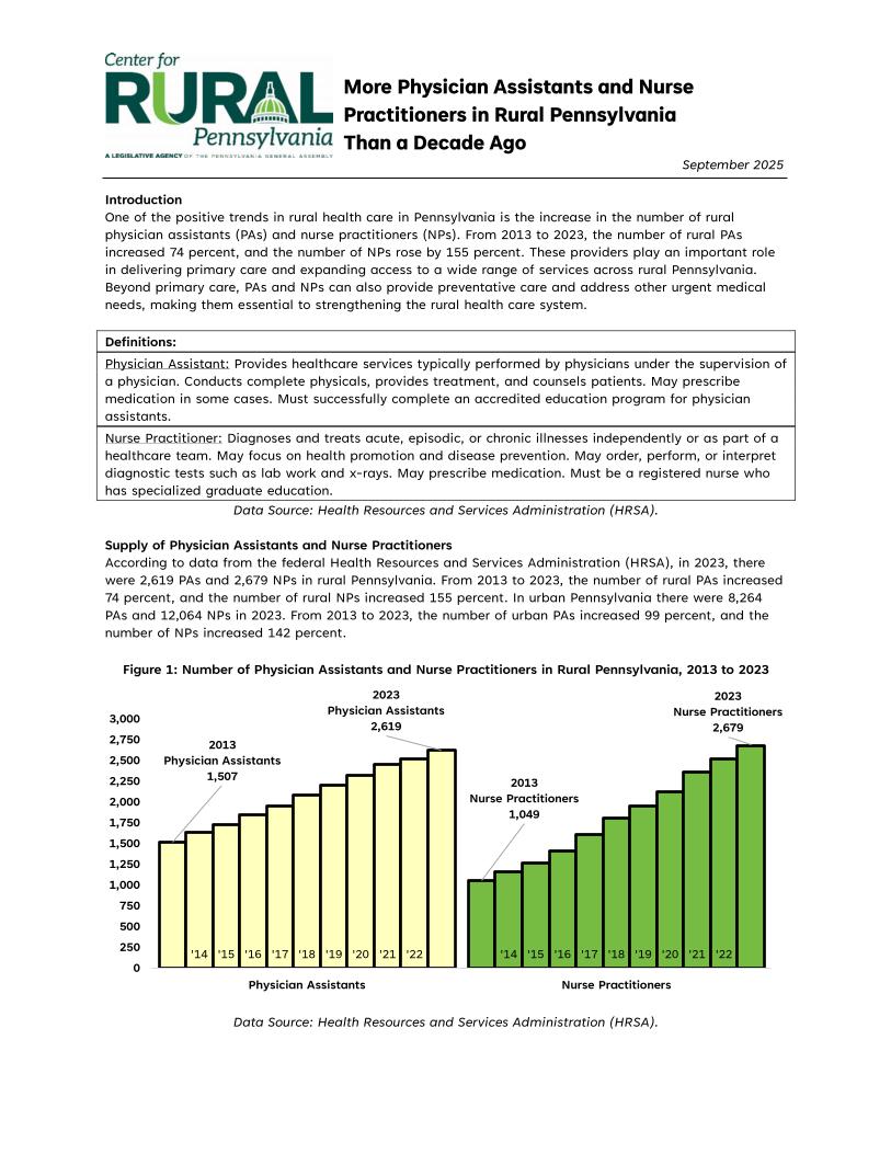 More Physician Assistants and Nurse Practitioners in Rural Pennsylvania Than a Decade Ago