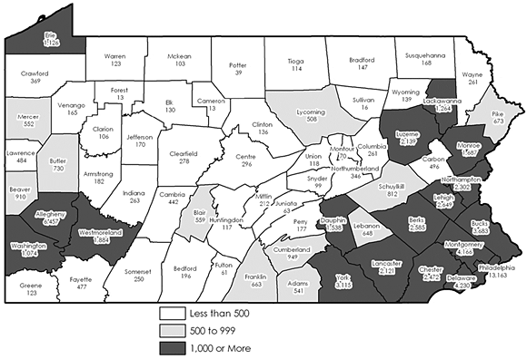 From 2007 to 2009, the number of new residential building permits issued declined about 46 percent in both rural and urban Pennsylvania counties.