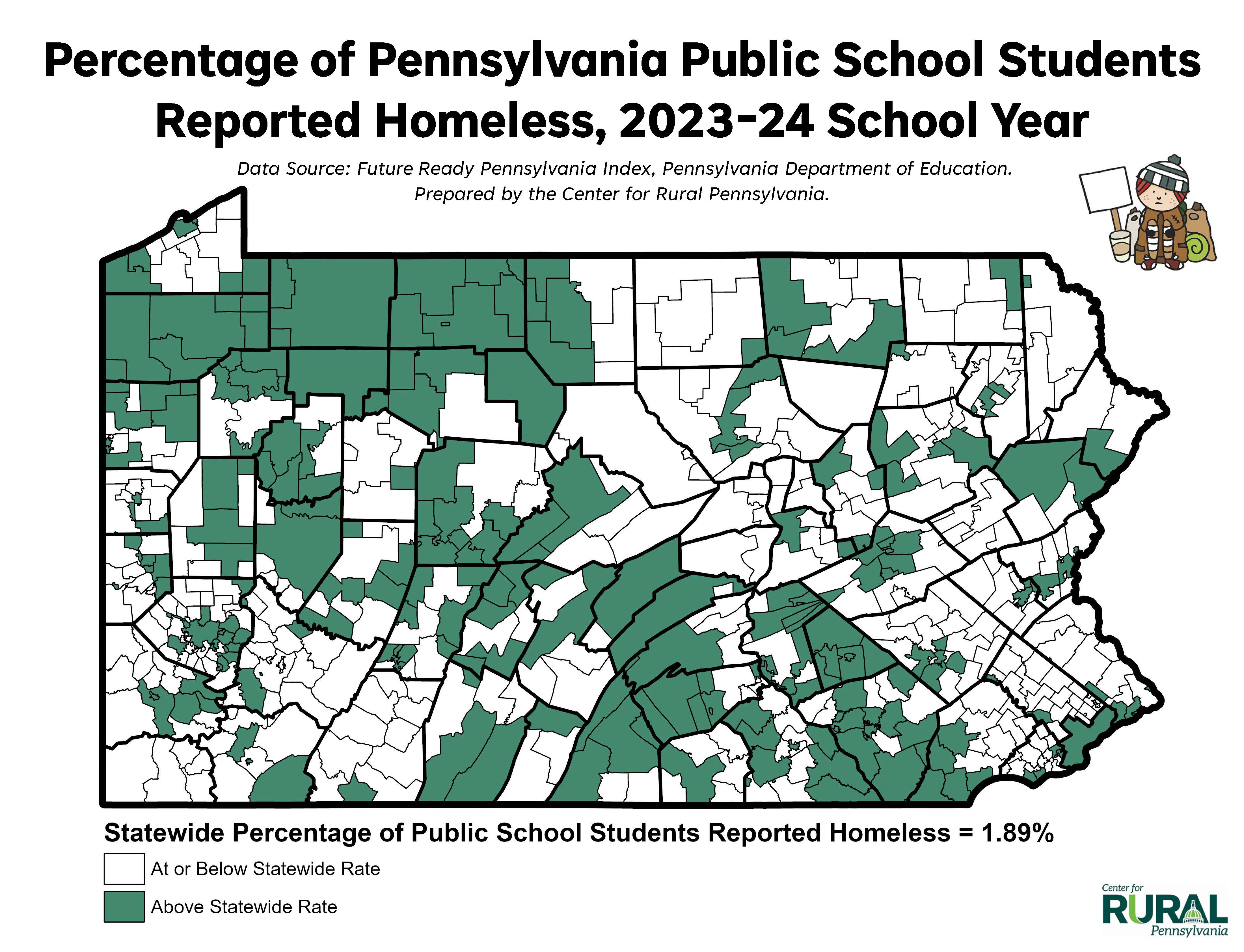 Percentage of Pennsylvania Public School Students Reported Homeless, 2023-24 School Year